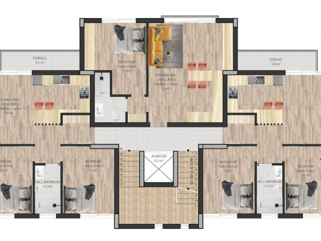 1+1 ve 2+1 daire seçenekleri