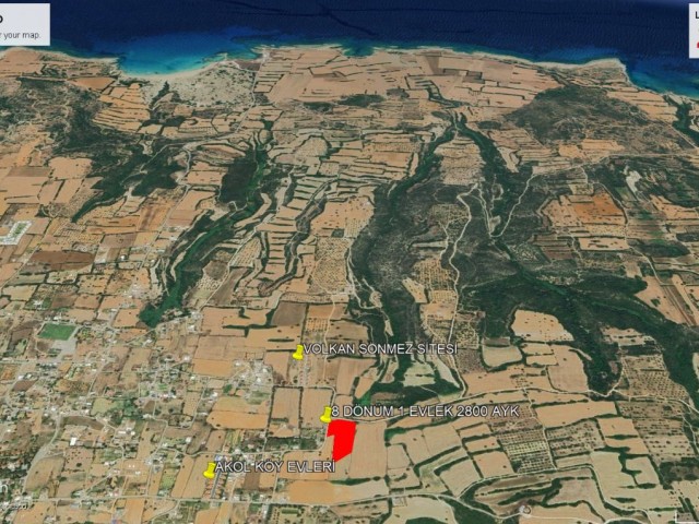 DİPKARPAZ DA YENİ SİTELER BÖLGESİN DE NET DENİZ MAZARALI SÜPER KONUM DA SATILIK 8 DÖNÜM 1 EVLEK ARAZİ NOT: MAĞUSA DA 3 ADET DAİRE VE YERİYE KALANI NAKİR PARA KARŞILIĞIN DA DA SATILIK DÖNÜM FİYATI 90,000 GBP ADEM AKIN 05338314949